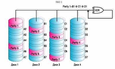 Главным же различием между RAID 5 и RAID 4 является способ размещения контрольных сумм.